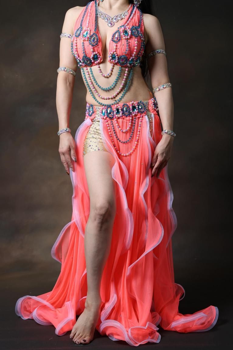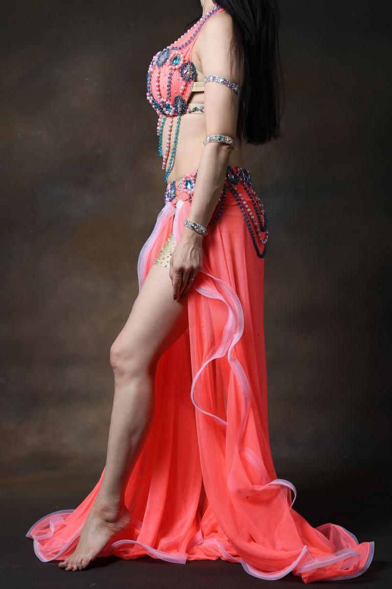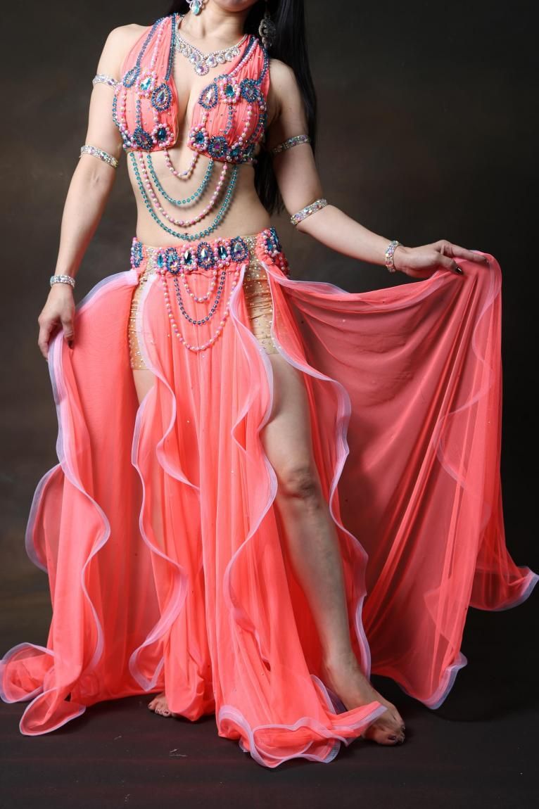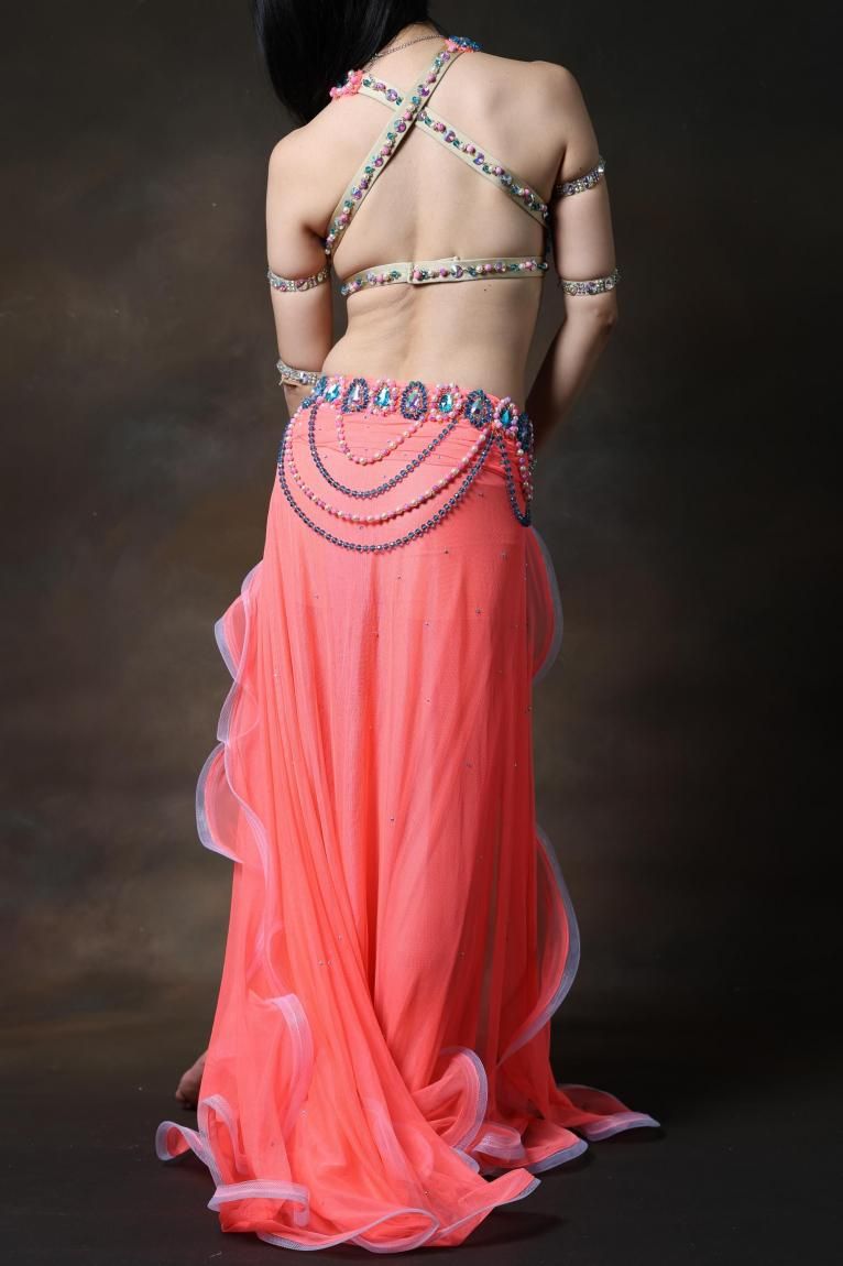 エジプト製 オリエンタル一体型コスチューム ベリーダンス衣装 サーモンピンク