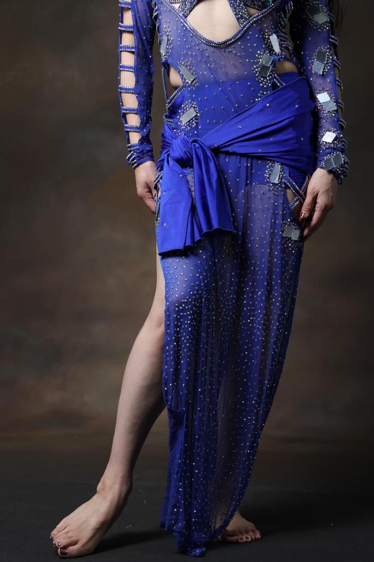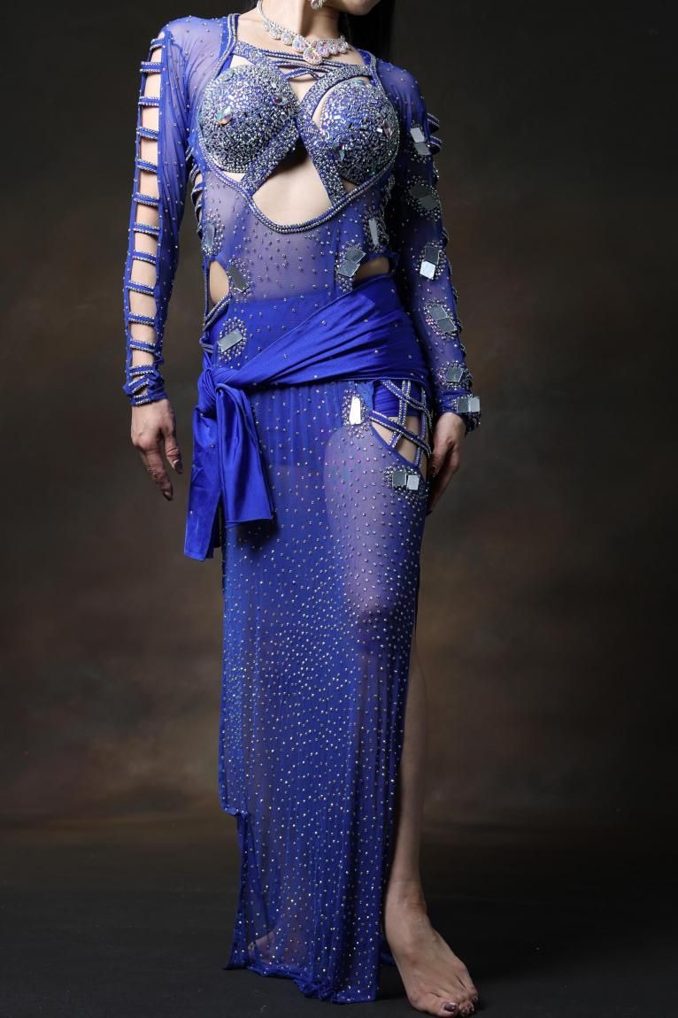 エジプト製 バラディドレス 葉モチーフ ピンク×グリーン