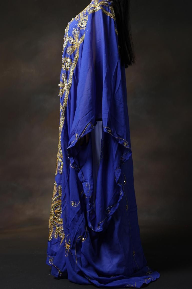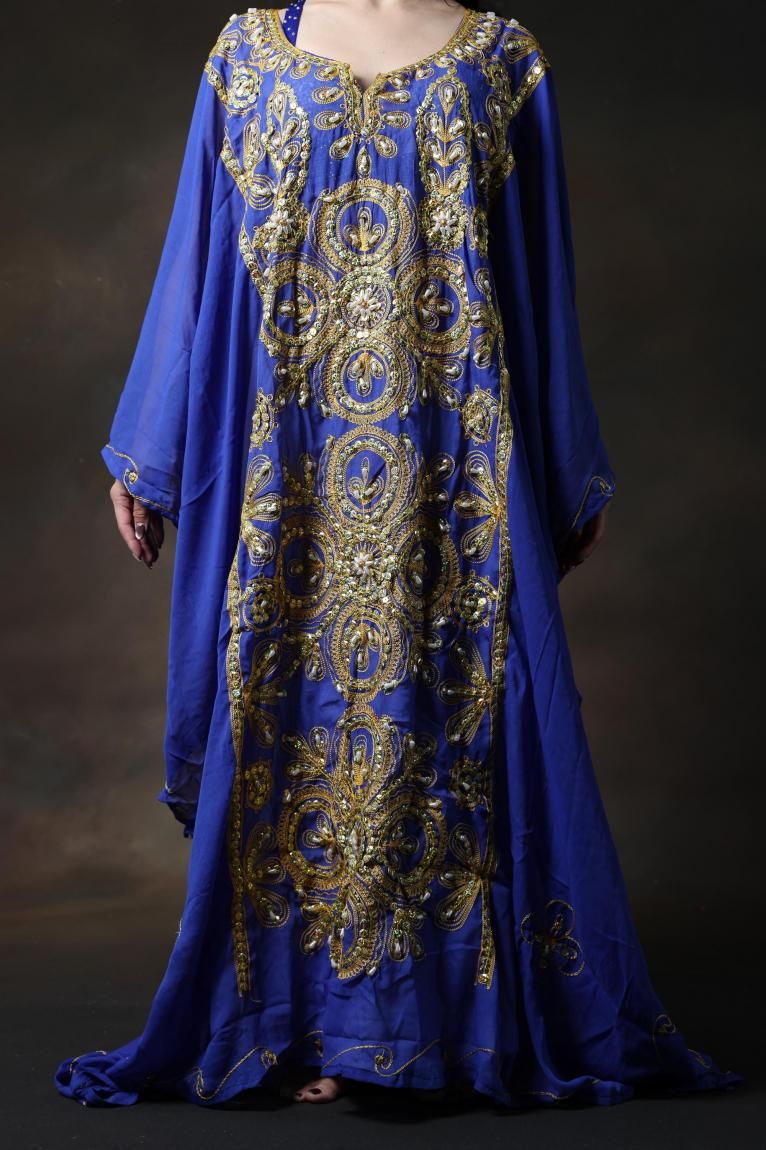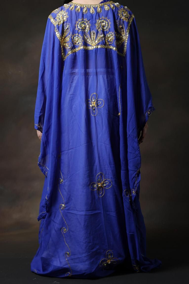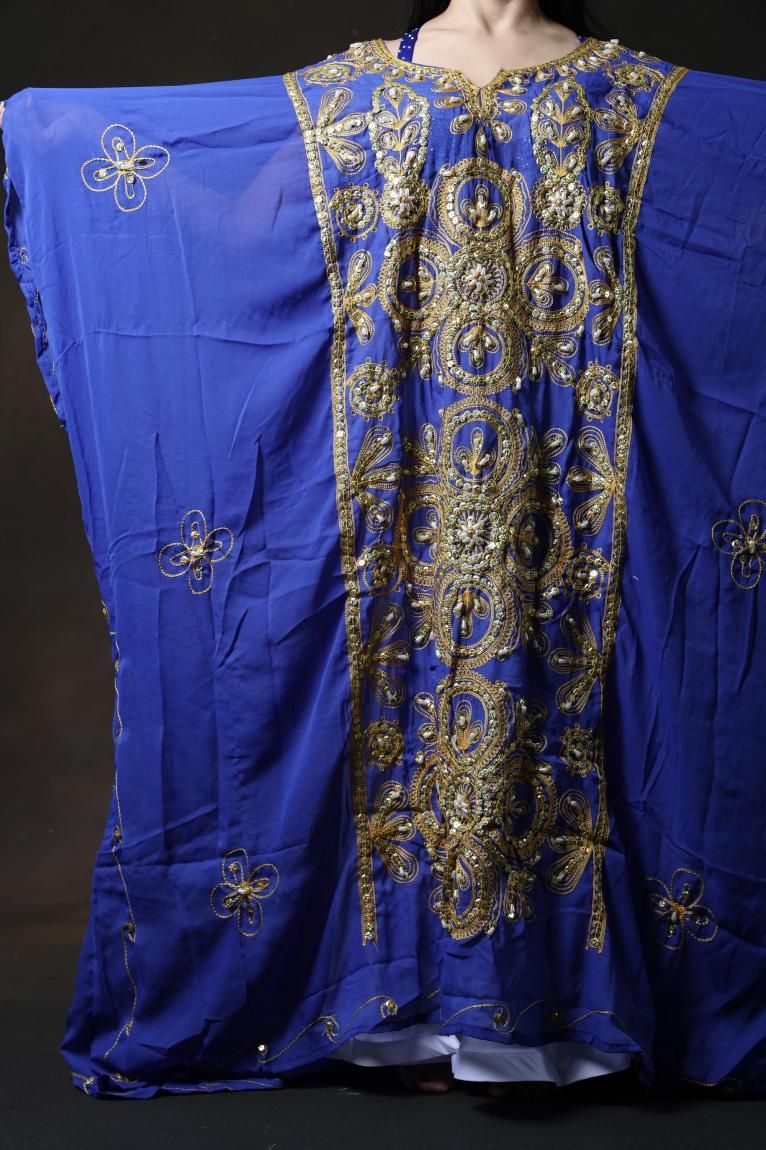 エジプト製 ハリージドレス ゴールド刺繍 ブルー