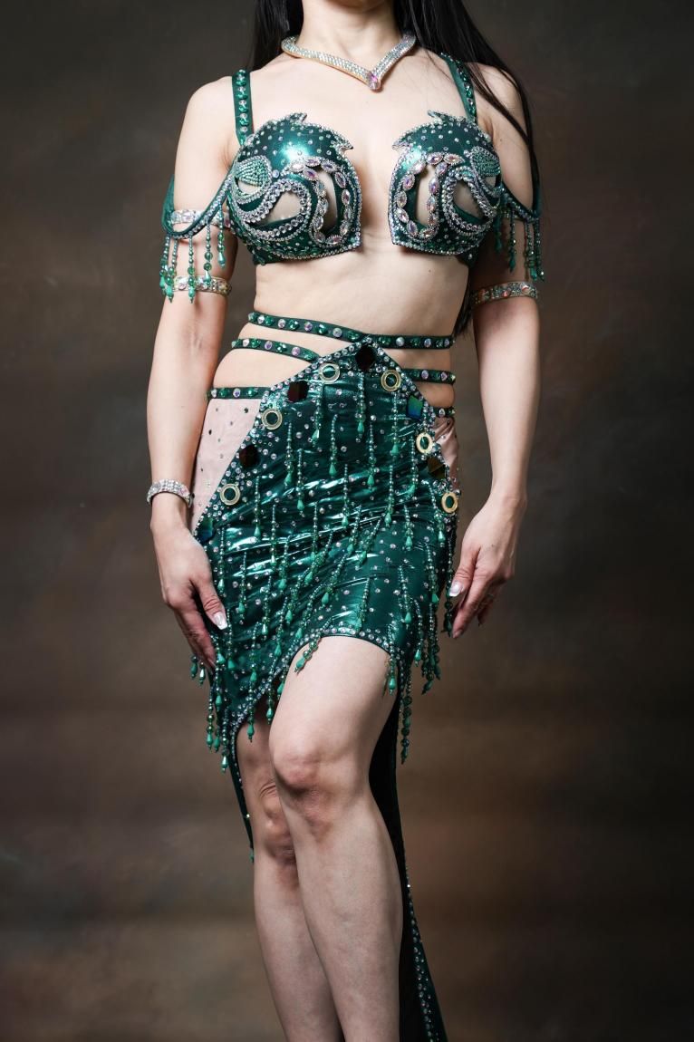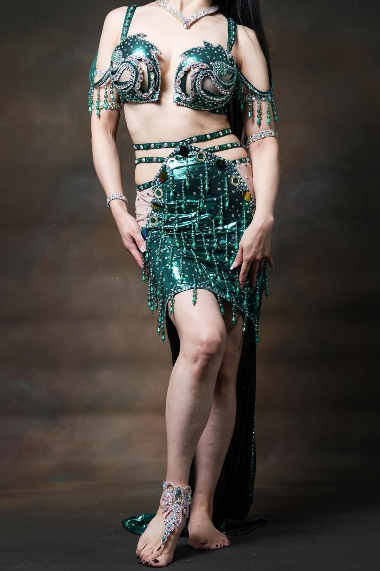 新作 Yasser bebo オリエンタル一体型 フロントミニ衣装 グリーン